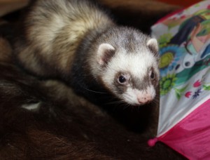 Holky přijely k nám do útulku ze Slovenska. Zde byly odebrány útulkem z nevhodných podmínek, a protože útulek nebyl specializovaný na fretky, oslovil nás se žádostí o pomoc. A tak jsme si fretky předali na hranicích, za pomoc moc děkujeme Pavlíně :-). Holky jsme hned odvezli na kliniku Jekl&Hauptman, kde podstoupily celkovou prohlídku a také kastraci. Po kastraci byly holky v pořádku, co se zdravotního stavu týče, horší je jejich psychika. Dost se bojí, schovávají se, sem tam přijdou si pro pamslek a zase s ním zmizí do úkrytu. Jejich socializace tedy bude trvat o něco delší dobu, nechceme nic uspěchat.