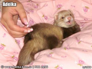 Adélku přesouvám do virtuálních adopcí. Je narozená na jaře 2007, takže již brzy 5ti letá fretečka, a myslím, že další změna by Adélku již mohla zabít.. zcela jistě by ji psychicky nezvládla. Takže Adélka zůstává u nás. Uvidíme, zda se mi časem podaří ji skamarádit s některými jinými fretečkami, ale zatím to moc nevypadá. Napadá každého, kdo se ocitne v její blízkosti. Včera vystartovala i po našem zlatíčko Angelovi (5ti letý moc hodný labrador), když si ke mě šel pro pamlsek.. Angee chuděrka v šoku ucouvl před tou malou dračicí :-). Jinak Adélka ještě tolik neběhá, jak Agátka, stále je slabá a hodně spí, ale už začíná pomaličku se zlepšovat a maličko se proběhne..