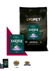 Farmer je české krmivo nové generace, které obsahuje kuřecí granule obalené v mase sušeném mrazem a BIO kolostru. Díky unikátní technologii jsou zachovány přirozené nutriční hodnoty všech použitých surovin.